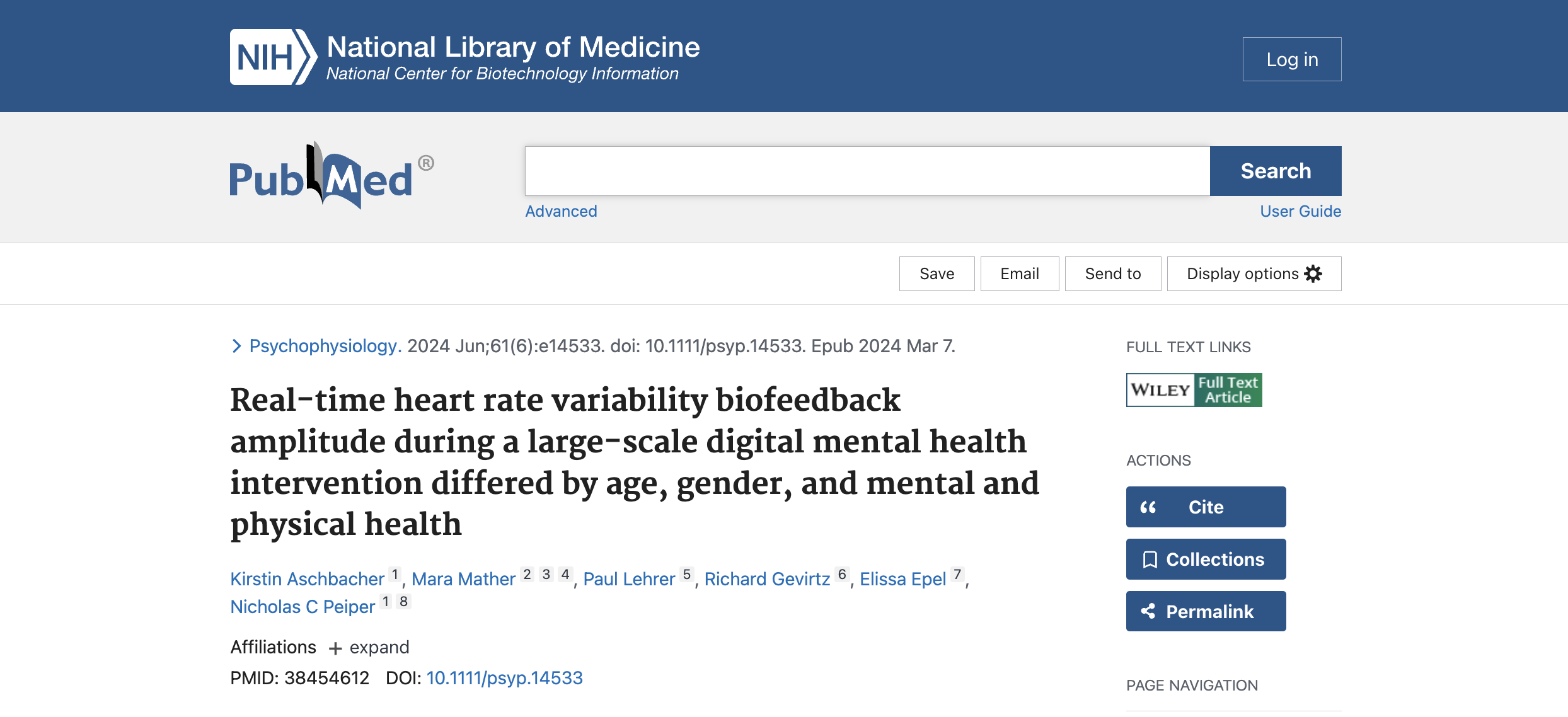 I first-authored the largest study to date of a real-time heart rate variability (HRV) biofeedback app, analyzing data from over 5,000 people in a digital mental health program.